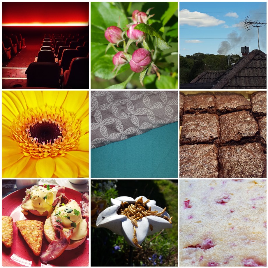From left to right: Beauty & The Beast on my birthday, apple blossom in the garden, watching the local steakhouse go up in flames, one of the lovely gerberas in my birthday bouquet from Sarah, clean sheets, making brownies for work colleagues, little bro treated me to breakfast, filling up my bird feeders, and raspberry traybake – yummy!
