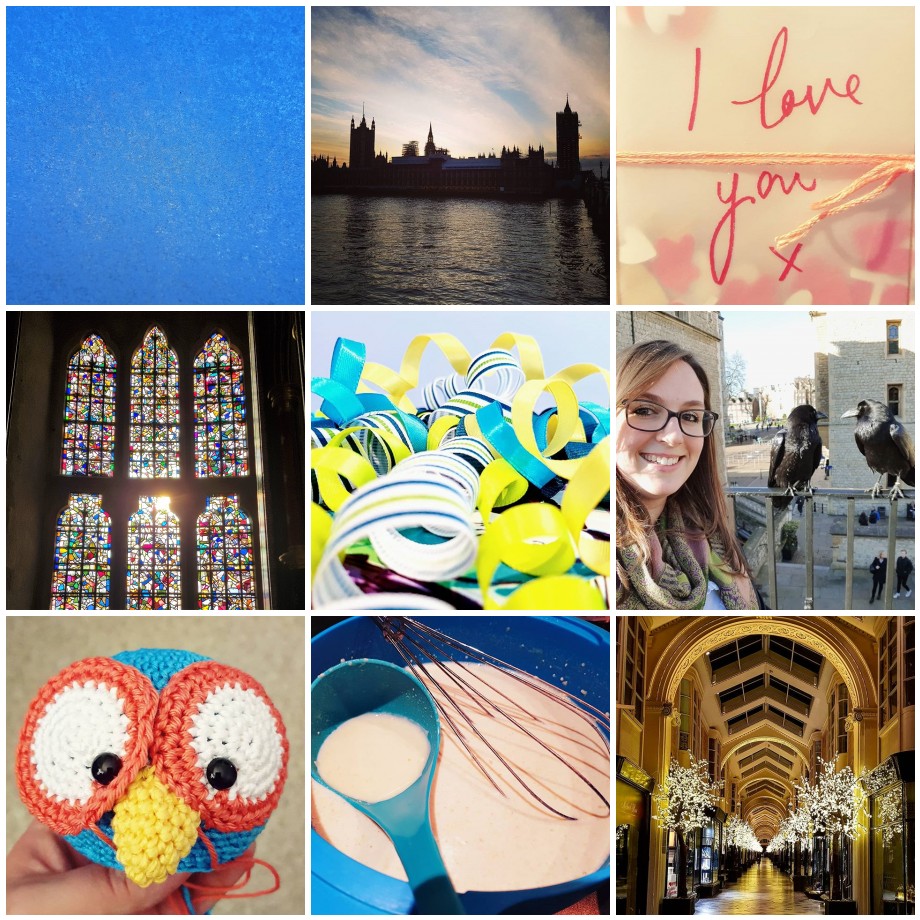 From left to right: another frosty windscreen, beautiful Westminster, Happy Valentine’s Day, I have always loved stained glass, present wrapping, ravens at the Tower of London, new on the hook, pancake day, and beautiful London shopping!